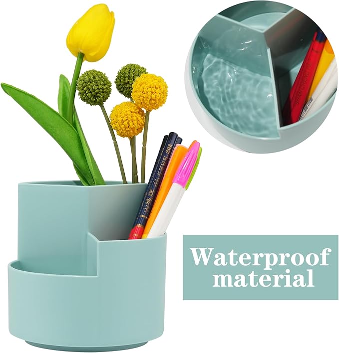 • 360-degree rotatable pen holder with 3 slots of different heights, easy to place things for different purposes.