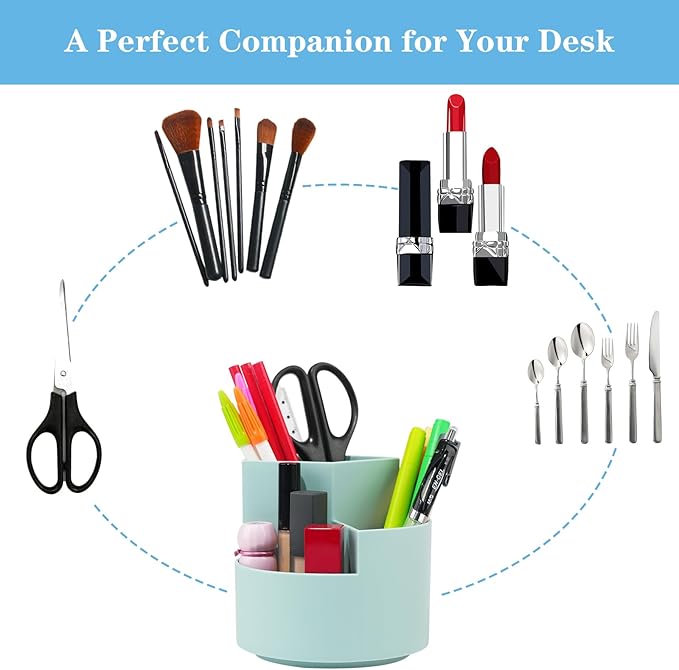 Desk Pencil Pen Holder, 360-degree Rotating Desktop Storage Organizer (Blue)