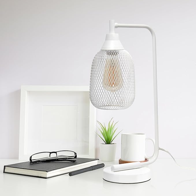 Elegant Designs LD1096-WHT 19″ Chic Contemporary Mesh Wire Arch Desk Lamp, for Living Room, Bedroom, Office, White